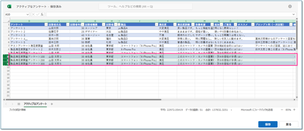 以下エクセルOnlineで登録した場合にも保存完了後に登録されていることを確認しました。