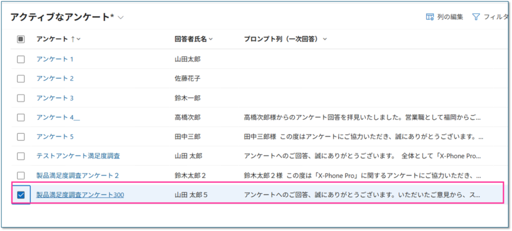 サンプルのアンケートテーブルで設定の流れを紹介します。