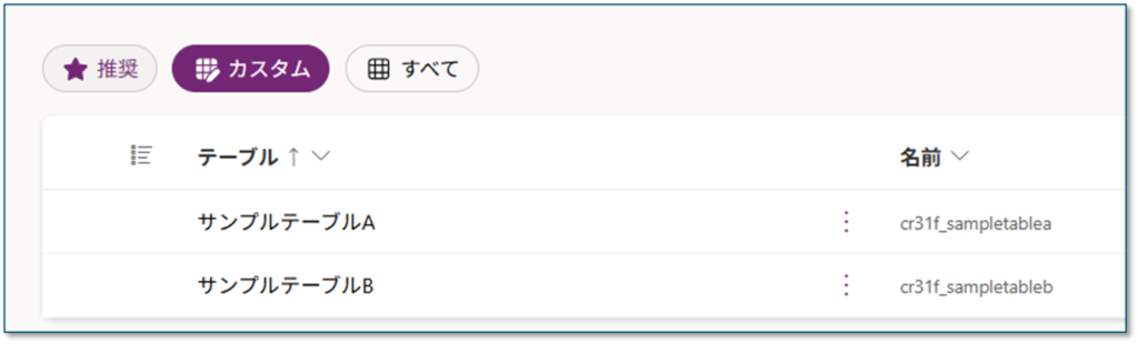 テーブルBのセット名は「cr31f_sampletablebs」です。
