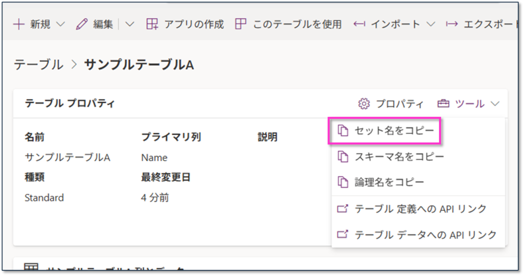 Dataverseのテーブルを動的に指定するにはセット名で指定!